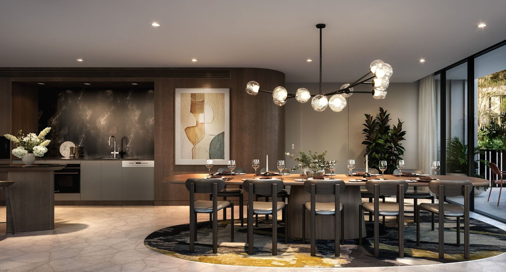 Nestled within the leafy canopy, Highforest apartments offer a bird’s eye view to the forest, a unique sense of treehouse living and an intimate connection to nature. Premium finishes reflect the tones and textures of nature, lending serene sophistication to luxurious contemporary apartments that offer diversity and flexibility to suit all lifestyles, with a focus on family-centric living centered around the kitchen.