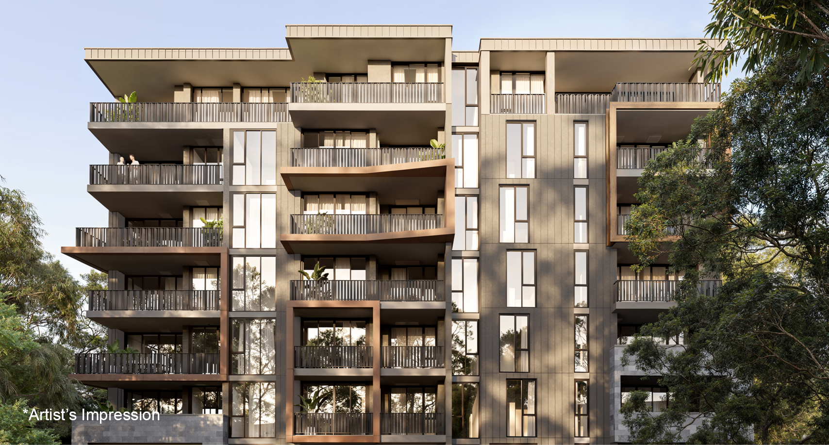 *Artist's impression as at June 2025 was produced prior to receipt of all final planning approvals and prior to commencement of construction and is subject to change. The information, image and artist's impression depicting exteriors and interiors are intended only as a guide and are not to be relied on as a representative of the final product. Furnishings are not included. Landscaping and other aspects of the project may differ from this image. The view depicted is not to be taken as a representation of the final view.