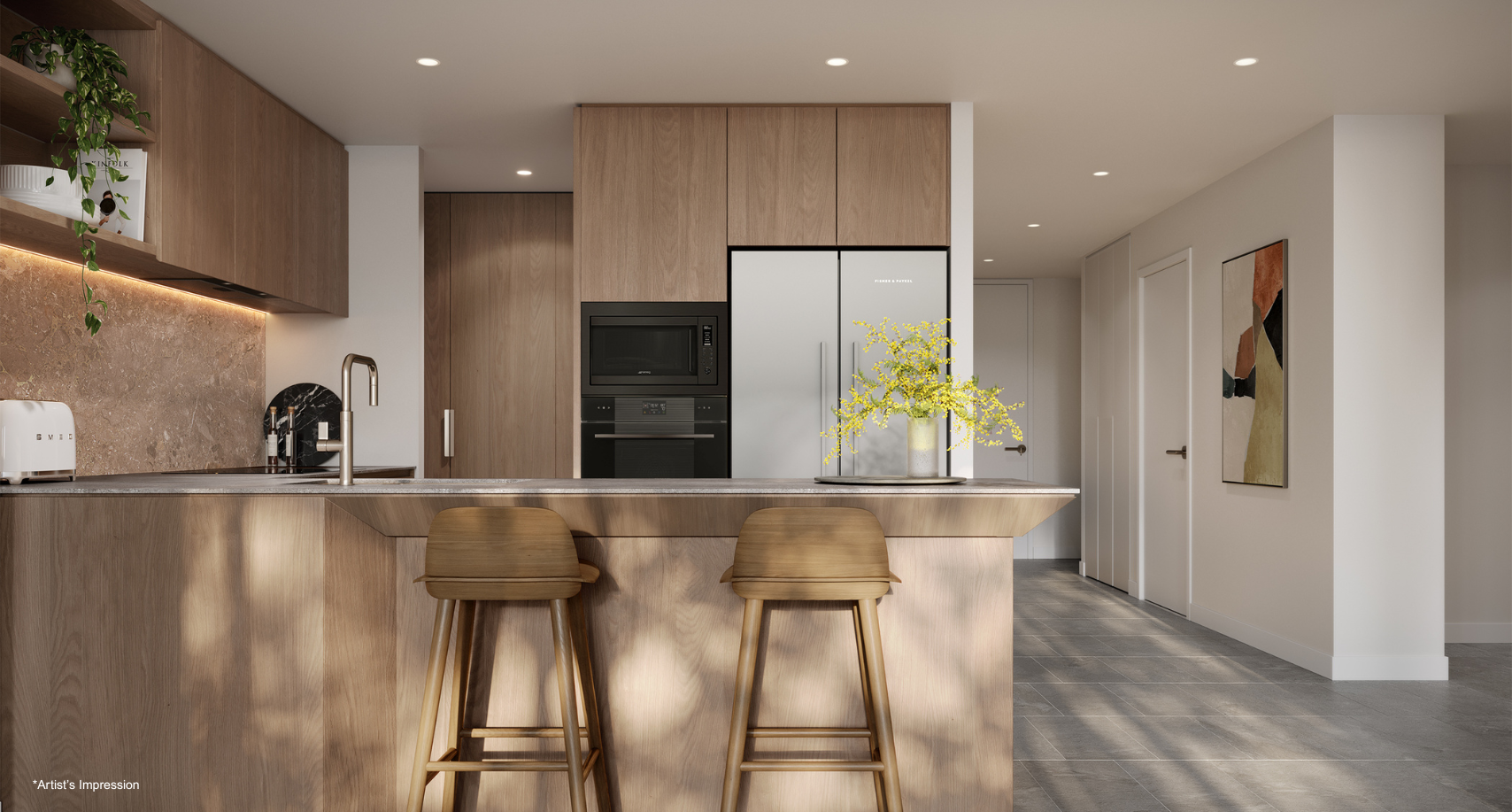 *Artist's impression as at June 2025 was produced prior to receipt of all final planning approvals and prior to commencement of construction and is subject to change. The information, image and artist's impression depicting exteriors and interiors are intended only as a guide and are not to be relied on as a representative of the final product. Furnishings are not included. Landscaping and other aspects of the project may differ from this image. The view depicted is not to be taken as a representation of the final view.