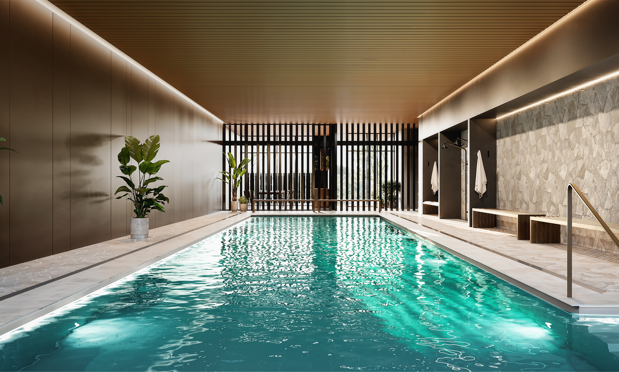 Residents will enjoy generous open spaces, park and play areas, as well as a private resident-only recreational facility including an indoor swimming pool, and community dining area^.