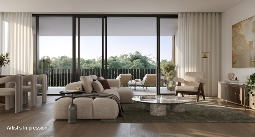 *Artist's impression as at 28.03.2024 was produced prior to receipt of all final planning approvals and prior to commencement of construction and is subject to change. The information, image and artist's impression depicting exteriors and interiors are intended only as a guide and are not to be relied on as a representative of the final product. Furnishings are not included. Landscaping and other aspects of the project may differ from this image. The view depicted is not to be taken as a representation of the final view.