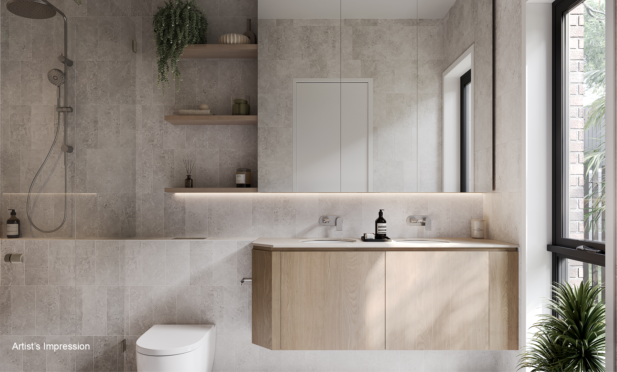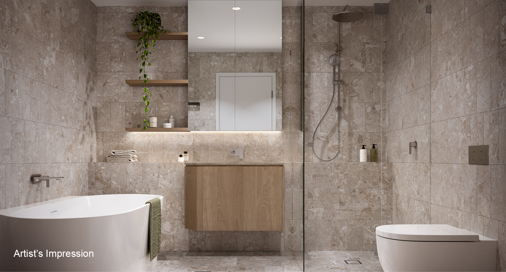 *Artist's impression as at 28.03.2024 was produced prior to receipt of all final planning approvals and prior to commencement of construction and is subject to change. The information, image and artist's impression depicting exteriors and interiors are intended only as a guide and are not to be relied on as a representative of the final product. Furnishings are not included. Landscaping and other aspects of the project may differ from this image. The view depicted is not to be taken as a representation of the final view.