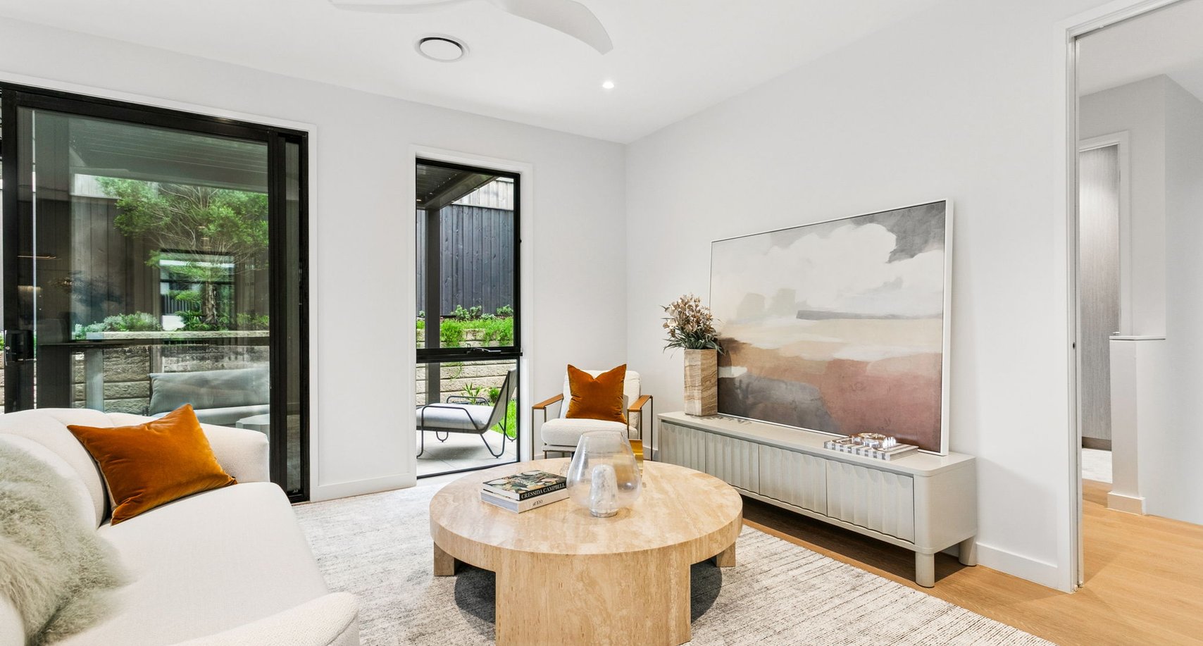 This beautifully designed corner home features a generous open plan living space that flows seamlessly to a patio and landscaped garden, perfect for entertaining or relaxing in nature. A secondary lounge area on the first floor adds versatility, forming the ideal balance of privacy and functionality.